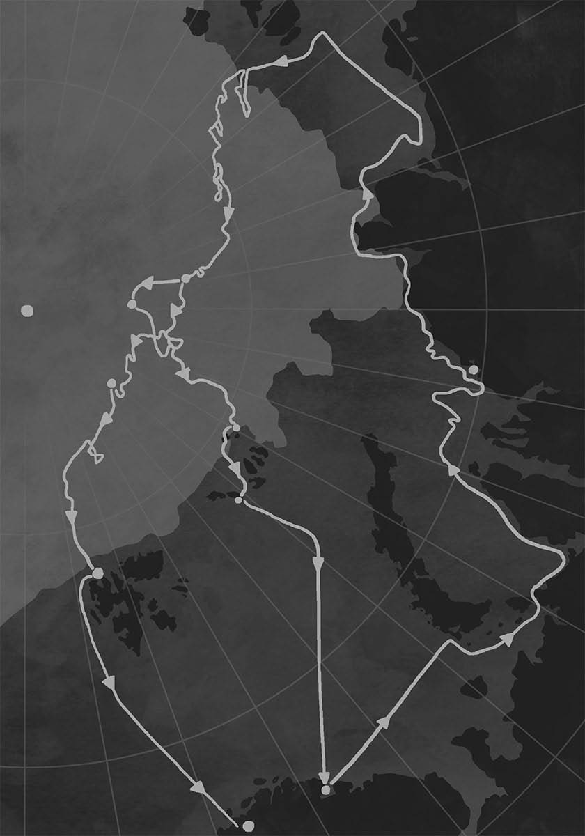A principios del siglo xix más allá de un vago trazado de la costa occidental de Groenlandia, el Polo Norte seguía siendo un lugar inex-plorado, inaccesible, despoblado y lleno de peligros.