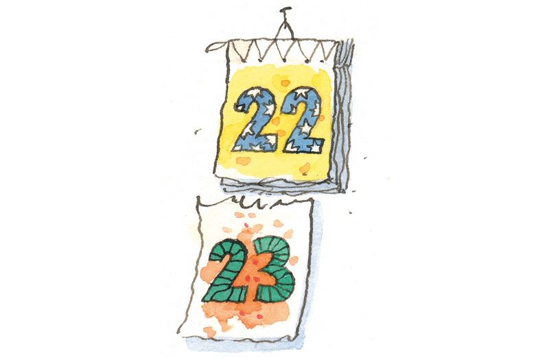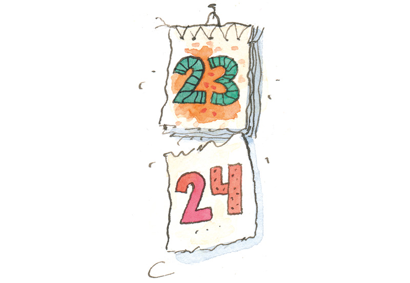 „Der Kalender beginnt bei vierundzwanzig“, erzählte der Reiseesel Mallorca, „und endet bei null! Jeden Tag reißt man ein Blatt ab. Vierundzwanzig, dreiundzwanzig, zweiundzwanzig … und dann ist Weihnachten. Ist das nicht gut?“