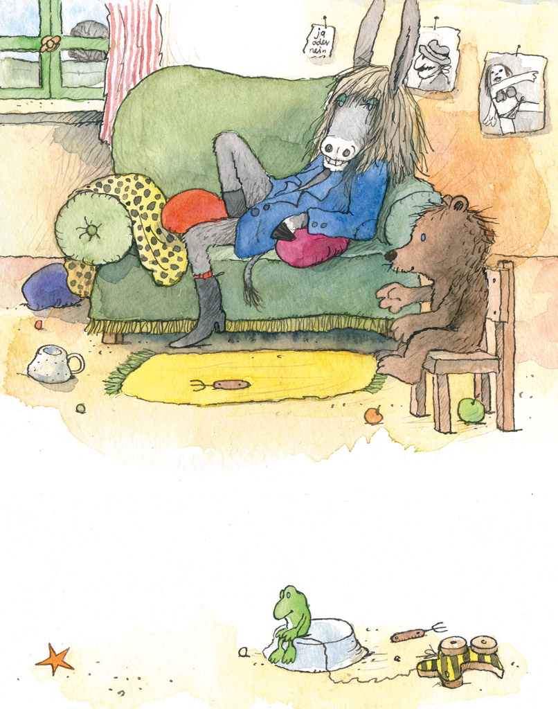 Am Nachmittag fegte der kleine Bär die gute Stube.