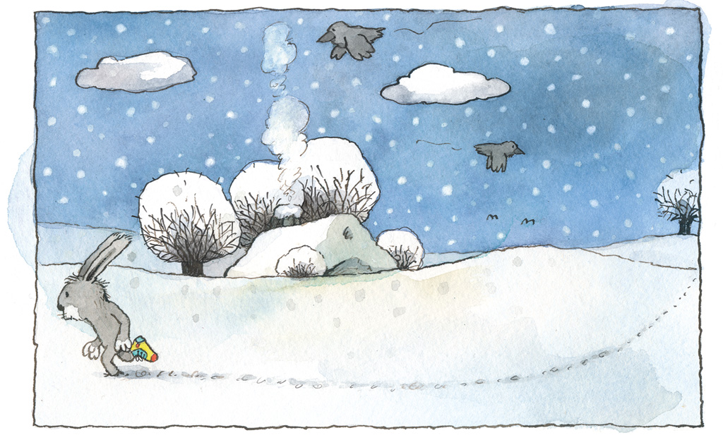 „Ist es nicht“, sagte der kleine Bär. „Hasen klopfen anders.“