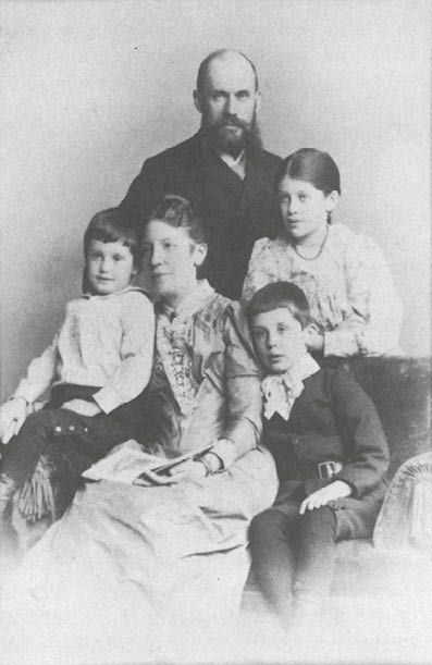 Walter Gropius (rechts) mit seinen Eltern und den Geschwistern Georg (links) und Manon (rechts oben), um 1892