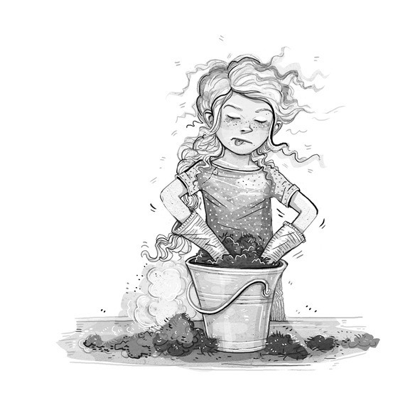 Anni und Herr Bovist waren mit ihren Zauberblumen auch so weit fertig. Zum Schluss gaben wir allen Samen noch etwas Wasser zu trinken. Herr Bovist klopfte sich Erde vom Mantel. Über uns rumpelte der Himmel. Inzwischen war er fast schwarz.