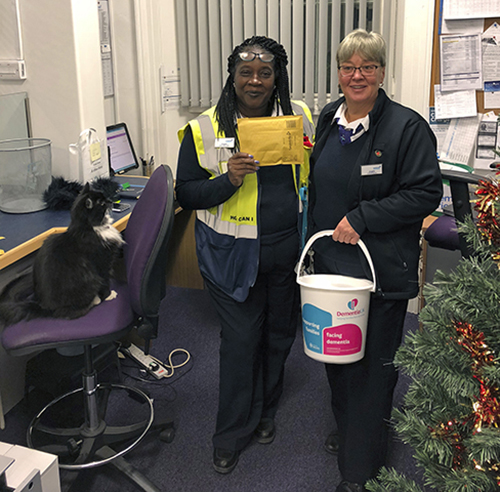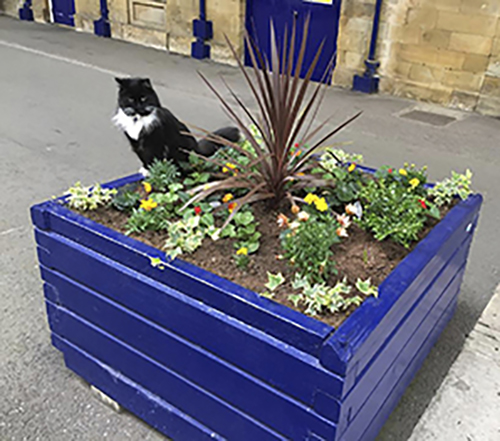 Felix »hilft« den Friends of Huddersfield Station bei der Gartenarbeit