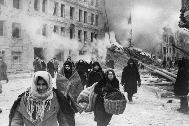 Bedeutete dies aber, dass die Wehrmacht mit ihren 18 Millionen Soldaten damit nichts anderes war als ein »marschierendes Schlachthaus« (Michael NaumannNaumann, Michael)? Die grausamen Fakten legen dies nahe: Deutsche Truppen schlossen Leningrad bereits am 8. September 1941 ein und belagerten die Stadt bis zu ihrer Befreiung durch die Rote Armee am 27. Januar 1944. Luftwaffe und Artillerie zerstörten mit ihren Bombardements große Teile Leningrads – Pläne, die Stadt zu erobern, gab die Wehrmacht im Laufe des Jahres 1942 jedoch auf und beschränkte sich auf die Abwehr der sowjetischen Versuche, die Stadt zu befreien. Die von jeglicher Versorgung abgeschnittenen Einwohnerinnen und Einwohner überließ die Wehrmacht ihrem Schicksal; die Folgen waren verheerend. Die hungernden Menschen begannen alles zu essen, was irgendwie organischen Ursprungs war: Nachdem die letzten Lebensmittel bereits Ende September 1941 verbraucht waren, wurden zunächst Tiere bis hin zu Krähen und Ratten, hernach Klebstoffe, Tapetenkleister und Schmierfette zur Nahrung; selbst Fälle von Kannibalismus sind belegt. Geringe Lebensmittelmengen konnten Einheimische und sowjetische Truppen unter erheblicher Lebensgefahr freilich über den bald zugefrorenen Ladogasee in die Stadt bringen. Im Winter wurde diese Verbindung über das Eis zur »Straße des Lebens«; bis zur Befreiung der Stadt im Januar 1943 blieb sie die einzige Verbindung zur Außenwelt. Dann konnten sowjetische Truppen unter horrenden Personalverlusten wenigstens einen schmalen Landkorridor errichten, der allerdings innerhalb der Reichweite der deutschen Artillerie lag. Rund um die Belagerung der Stadt verloren inklusive der Kämpfer zwischen 1,6 und zwei Millionen Menschen ihr Leben, davon verhungerten in Leningrad zwischen 600 000 und einer Million Menschen oder erlagen Krankheiten.