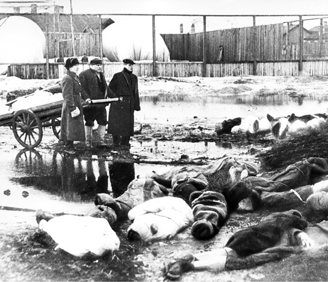 Am zweiten Weihnachtsfeiertag 1941 stimmte der Oberbefehlshaber der 18. Armee, Generaloberst Georg von KüchlerKüchler, Georg von, dem Antrag des XXVIII. Armeekorps zu: 230–240 psychisch, an Syphilis oder Epilepsie erkrankte Frauen aus einer Anstalt in dem ehemaligen Kloster Makarevskaja Pustin sollten durch ein Einsatzkommando des Sicherheitsdienstes (SD) ermordet werden. Die Patientinnen seien »auch im Sinne deutscher Auffassung Objekte nicht mehr lebenswerten Lebens«, urteilte das Armeekorps. Auch wegen der Seuchengefahr sei ihre Ermordung unvermeidlich. Das, was danach geschah, war kein Einzelfall. Bereits in den Wochen zuvor hatte der Oberquartiermeister des Armeeoberkommandos »die Übergabe« der Insassen einer anderen Anstalt in Nikolskoe befohlen, da die »Ernährung der 1200 Irren« nicht mehr möglich sei. Wenig später überzeugte sich KüchlerKüchler, Georg von persönlich vom »Erfolg« der Maßnahme: 850–900 Patienten der Anstalt waren mit Giftinjektionen getötet und in einem Panzergraben verscharrt worden.