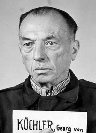 Georg von KüchlerKüchler, Georg von (1881–1968) leitete die Belagerung von Leningrad. Nach dem Krieg wurde er zu 20 Jahren Gefängnis verurteilt, kam jedoch 1953 frei. Seine Mitverantwortung an den Verbrechen bestritt er stets.