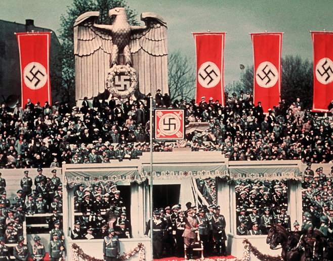 Militärparade zu HitlersHitler, Adolf 50. Geburtstag in Berlin, an dem Tausende dem »Führer« ihre Treue bekundeten. Mit derartigen Inszenierungen verstand es das NS-Regime, Massen zu begeistern.
