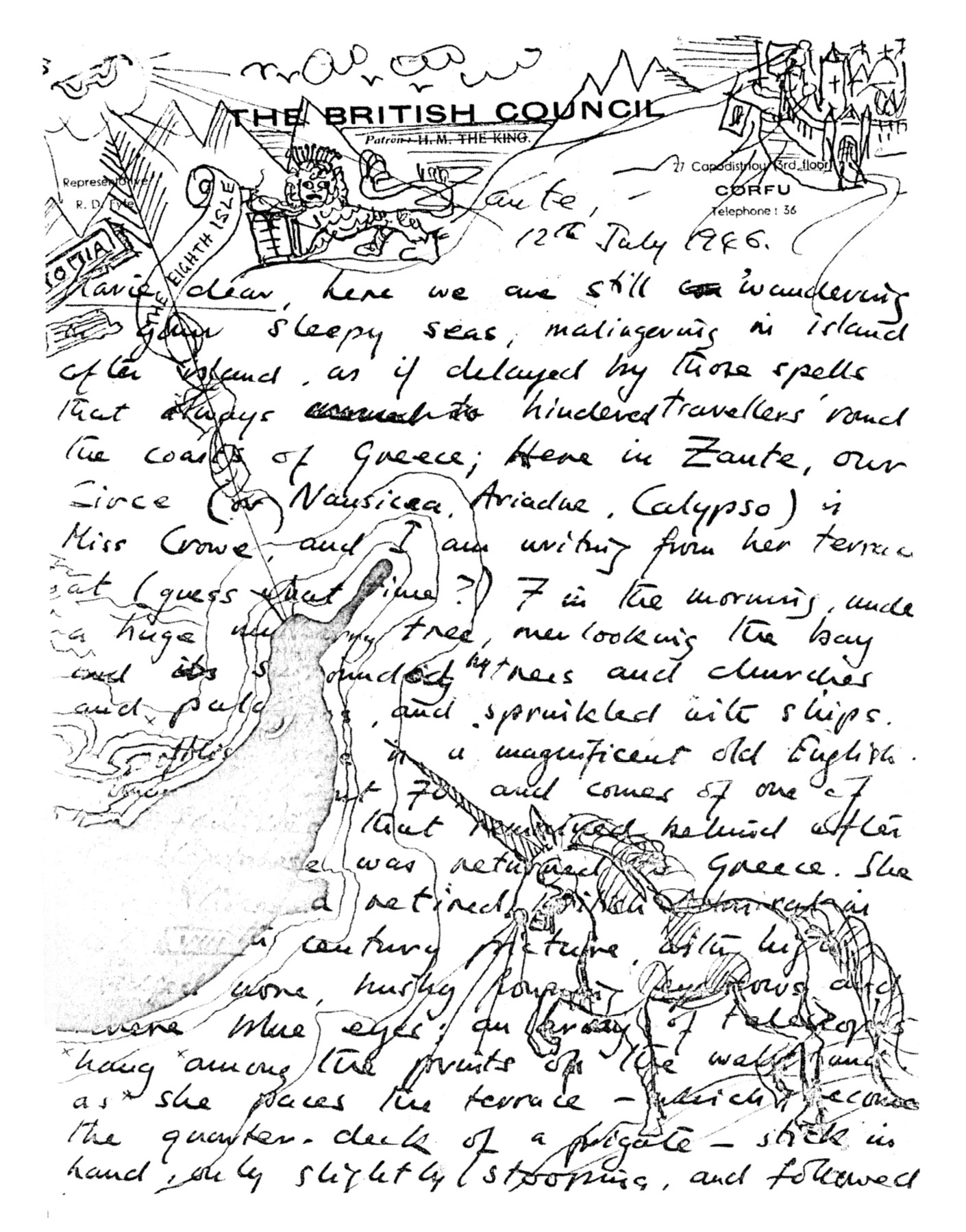 Nach dem Krieg arbeitete Paddy gut ein Jahr lang für den British Council in Athen – seine, wie sich herausstellen sollte, einzige feste Anstellung in Friedenszeiten, und sie endete mit seiner Entlassung. Es war zu offensichtlich, daß ihm »Büroarbeit nicht lag«. Wir drucken hier einen Brief, den er auf einer im Auftrag des British Council unternommenen Vortragsreise durch Griechenland schrieb, sowie einen zweiten an Lawrence Durrell, in dem er sich über seine Entlassung beklagt – einer der wenigen Fälle, in denen er einmal zu einem Fluchwort greift.