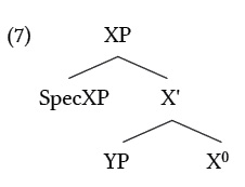 Man hat sich zahlreiche Strukturen von Phrasen angeschaut und herausgefunden, dass sie unter einem bestimmten Abstraktionsniveau gleich aufgebaut sind. Das Ergebnis dieser Analyse ist die sogenannte X'-TheorieX'-Theorie (lies: X-bar), die für alle Phrasen in allen Sprachen die Struktur in (7) voraussagt.