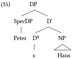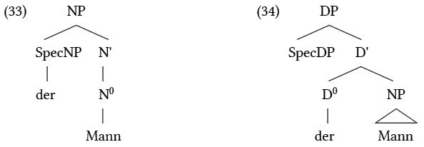 Bei NPn ist die Spec-Position z.B. besetzt, wenn ein Artikel auftritt (vgl. (13)).