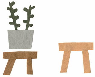 Ich setze mich auf den Boden, um herauszufinden, wie es auf ihrer Höhe aussieht. Ich hänge Gemälde, die sie betrachten und an denen sie sich erfreuen können, weit unten an die Wand, und Pflanzen, die sie versorgen sollen, stehen auf dem Boden oder auf niedrigen Tischen.