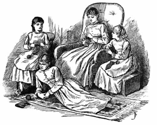Fröhliche Weihnachten, meine Töchterchen! Es freut mich, dass ihr gleich angefangen habt, und ich hoffe, ihr werdet fortfahren. Doch will ich ein Wort mit euch reden, ehe wir uns zum Frühstück setzen. Nicht weit von hier liegt eine arme Frau mit einem kleinen neugeborenen Kind; sechs große Kinder sind in einem Bett zusammengepackt, um sich vorm Erfrieren zu schützen, denn sie haben kein Feuer. Sie haben nichts zu essen, und der älteste Knabe kam herüber, um mir zu sagen, dass sie hungern und frieren. Meine lieben Mädchen, wollt ihr ihnen euer Frühstück als Weihnachtsgeschenk geben?