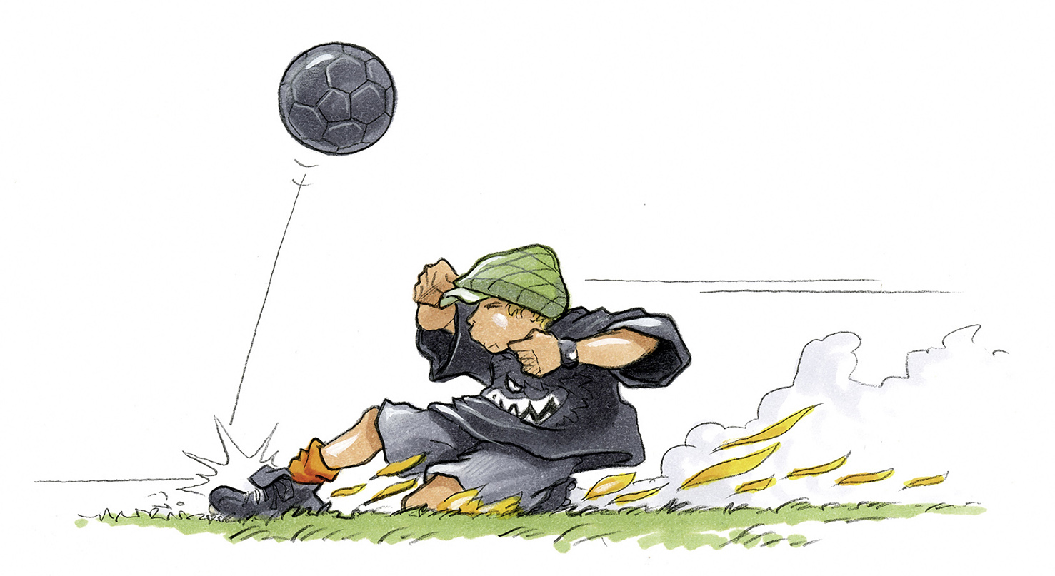 Auf Maxi »Tippkick« Maximilians Gesicht entstand sein berühmtes, lautloses, grinsendes Lächeln: Das war ein Schuss!