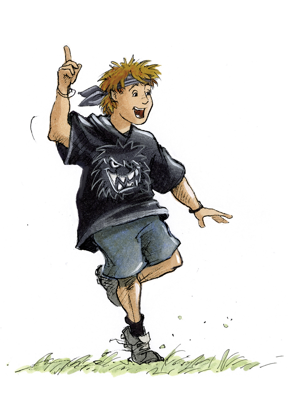 Und mit diesem berühmten, lautlosen, grinsenden Lächeln sah Maxi »Tippkick« Maximilian zu, wie der Ball von der Wand zurückprallte und das Wohnzimmerfenster auf der anderen Seite durchschlug. Der Ball rollte weiter und rollte und rollte, bis ihn der Fuß von Maxis Vater, der gerade von der Arbeit in der Bank zurückkam, elegant stoppte. Das berühmte, lautlose, grinsende Lächeln auf Maxis Gesicht erstarb. Es war jetzt endgültig dunkel geworden und bis zum Ferienbeginn blieb uns nur noch ein einziger Tag.