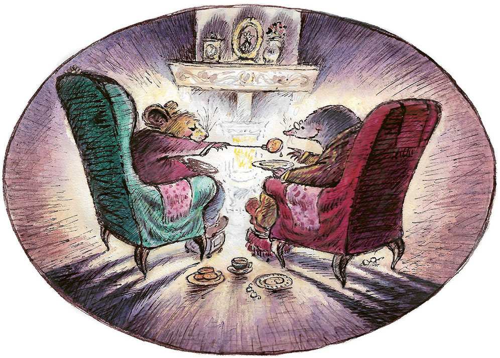 Also toastete Maus für Maulwurf ein paar Teekuchen und röstete einige Kastanien.