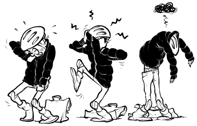 Damit war mein Zeitplan, den ich mir überlegt hatte, um bloß nicht zu spät zu kommen, komplett im Eimer. Während ich wie ein Bekloppter zur Schule strampelte, rechnete ich meine Verspätung aus: