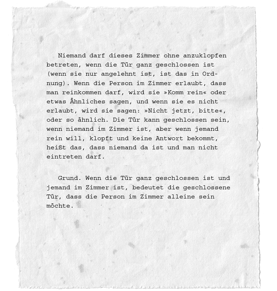 Sie verpasste die selbst gestellte Deadline, ihren Geburtstag, weil sie krank wurde, aber ein paar Tage und 40 000 Wörter später hatte sie ihre Aufgabe erledigt. Barbara hoffte, ein paar Kopien für ihre Freunde anfertigen zu können, doch das Original war für ihre Mutter bestimmt. Es war eine Geschichte über ein kleines Kind in der Wildnis. Sie hieß Die Welt ohne Fenster.
