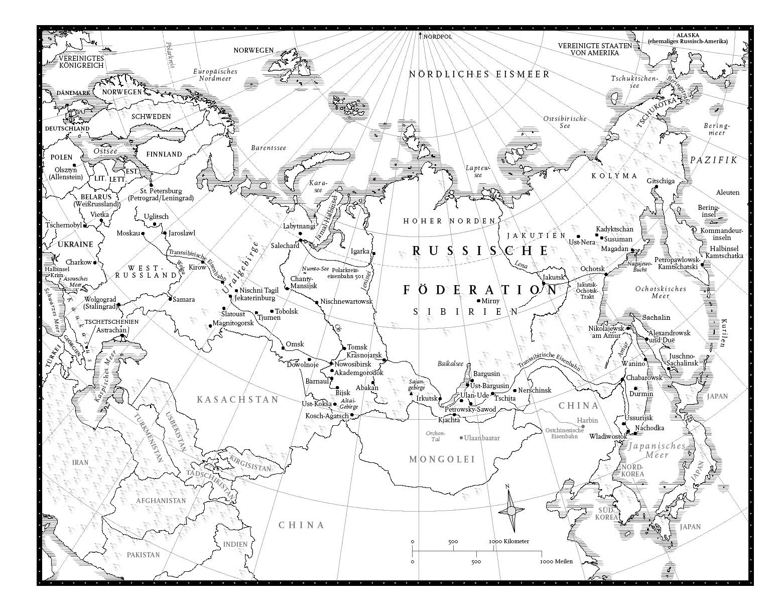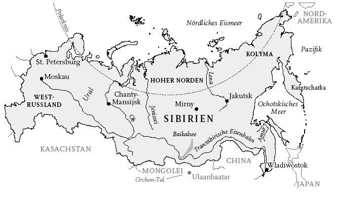 Mein Sibirien umfasst das gesamte Territorium östlich des Uralgebirges bis zum Pazifik; das ist das »Sibirien«, wie es auf den kaiserlich-russischen Landkarten bis in die Sowjetzeit definiert war. Es ist eine äußerst weit gefasste Interpretation Sibiriens, die auch den Hohen Norden und den Fernen Osten Russlands und zudem Gebiete einschließt, die im 18. und 19. Jahrhundert gewonnen und wieder verloren wurden. Ich entschuldige mich deshalb im Voraus in dem Wissen, dass ich mich nicht an die modernen Verwaltungsgrenzen oder an die vorherrschende politische Korrektheit gehalten habe, wer oder was sibirisch ist. Stattdessen folge ich Anton Tschechows Erklärung: »Die sibirische Ebene beginnt, so scheint es, direkt hinter Ekaterinburg und endet der Teufel weiß wo …«