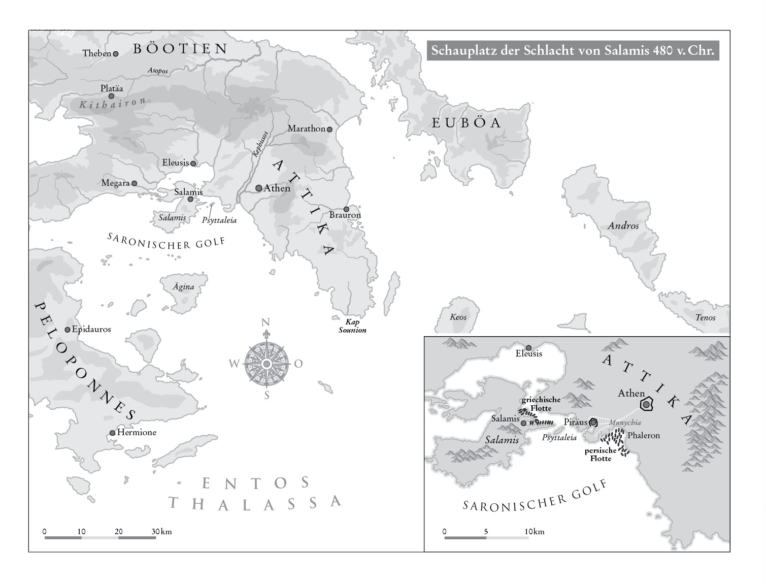 Aber ich schweife ab. Wir erwischten die Bastarde – meine neue Phalanx aus Platäa –, und wir zerquetschten sie. Mein Freund und Gefährte Teukros, der Bogenschütze aus Milet, tötete den jungen Simonalkes, genannt Simon. Und so waren wir gerade in unserem Kampfverband, als die Athener uns um Hilfe baten, denn die Perser, die soeben Euböa mit Feuer überzogen hatten, marschierten in Richtung Athen.
