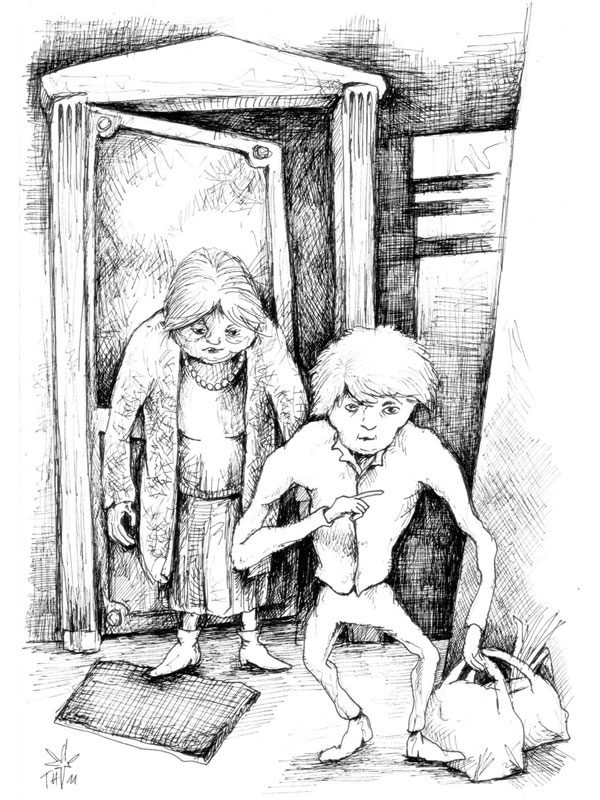 Der Zwerg stellte die beiden Tüten mit einem schweren Plumpsgeräusch ab und blickte hinauf zu seinem Gegenüber, der ihn um über drei Köpfe überragte.
