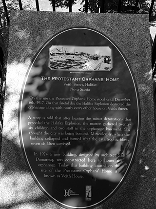 “A story is told that after hearing the minor detonations that preceded the Halifax Explosion, the matron gathered twenty-six children and two staff in the orphanage basement. She thought the city was being bombed. Miraculously, when the building collapsed and burned after the catastrophic blast, seven children survived.”
