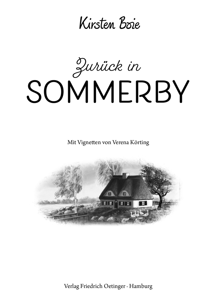 »Na, jetzt bin ich gespannt, wie es aussieht!«, sagt Mama, als sie in Sommerby in die kleine Nebenstraße einbiegen, an deren Ende die Landzunge beginnt, auf der Oma Inges Haus steht. Diesmal wollte Mama die Kinder unbedingt selbst zu Oma Inge bringen. »Ob wir immer noch über den Zaun klettern müssen, wenn wir zu meiner Mutter wollen?« Das mussten sie im Sommer nämlich. Oma Inge war viele Jahre lang mit dem ganzen Dorf Sommerby zerstritten, darum gab es keinen Weg von dort zu ihrem Haus.