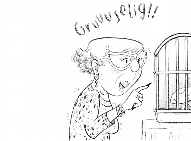 Flopson und Tjalle lebten schon lange bei Frau Huppenschuh und verstanden die Sprache der Menschen sehr gut. Doch leider verstand Frau Huppenschuh die Sprache der Tiere nicht. Zielstrebig schob sie ihre Hand in den Käfig. »Na komm, mein lieber Tjalle, wir gucken zusammen einen Krimi!«, sagte sie.