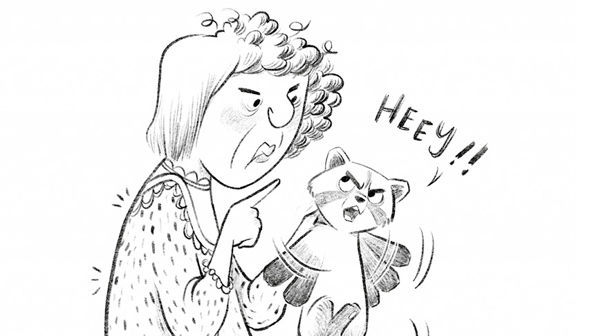 »So, meine Liebe, nun habe ich genug!« Das war Frau Huppenschuh. Wütend stopfte sie sich ihr Haustier unter den Arm. Flopson wollte weiter nach oben rennen, aber der Griff von Frau Huppenschuh war sehr fest. Noch in Hausschuhen und Glitzernachthemd, polterte sie die Stufen nach unten.