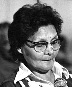 Mary Wilson, Slavey, was born 1920 in Fort Good Hope (K’asho Got’ine) and was educated in the convent school in Aklavik. She lived in Yellowknife and worked for the Dene Nation.