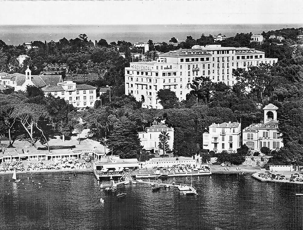 Das »Provençal«, 1927 eröffnet, war über fünf Jahrzehnte Geschäftsmotor und Kommunikationszentrum des Seebads Juan-les-Pins. Architekt Lucien Stable hatte 1920 die École des Beaux-Arts in Paris absolviert und war auch für die Konstruktion des Hotels Georges V. an der Croisette in Cannes verantwortlich. Die Fassade des »Provençal« hat zwar Art-déco-Anklänge, aber es war in seiner stilistischen Melange nicht resolut modern; in der Innenausstattung fanden sich provenzalische Lüster und Freskenmalereien des Genueser Künstlers David Dellepiane. Auffällig waren die im Vergleich zu den Belle-Époque-Palästen eher schlichten Zimmer; die mehr oder weniger betuchten Gäste sollten sich hauptsächlich am Strand und vor allem im Spielcasino aufhalten.