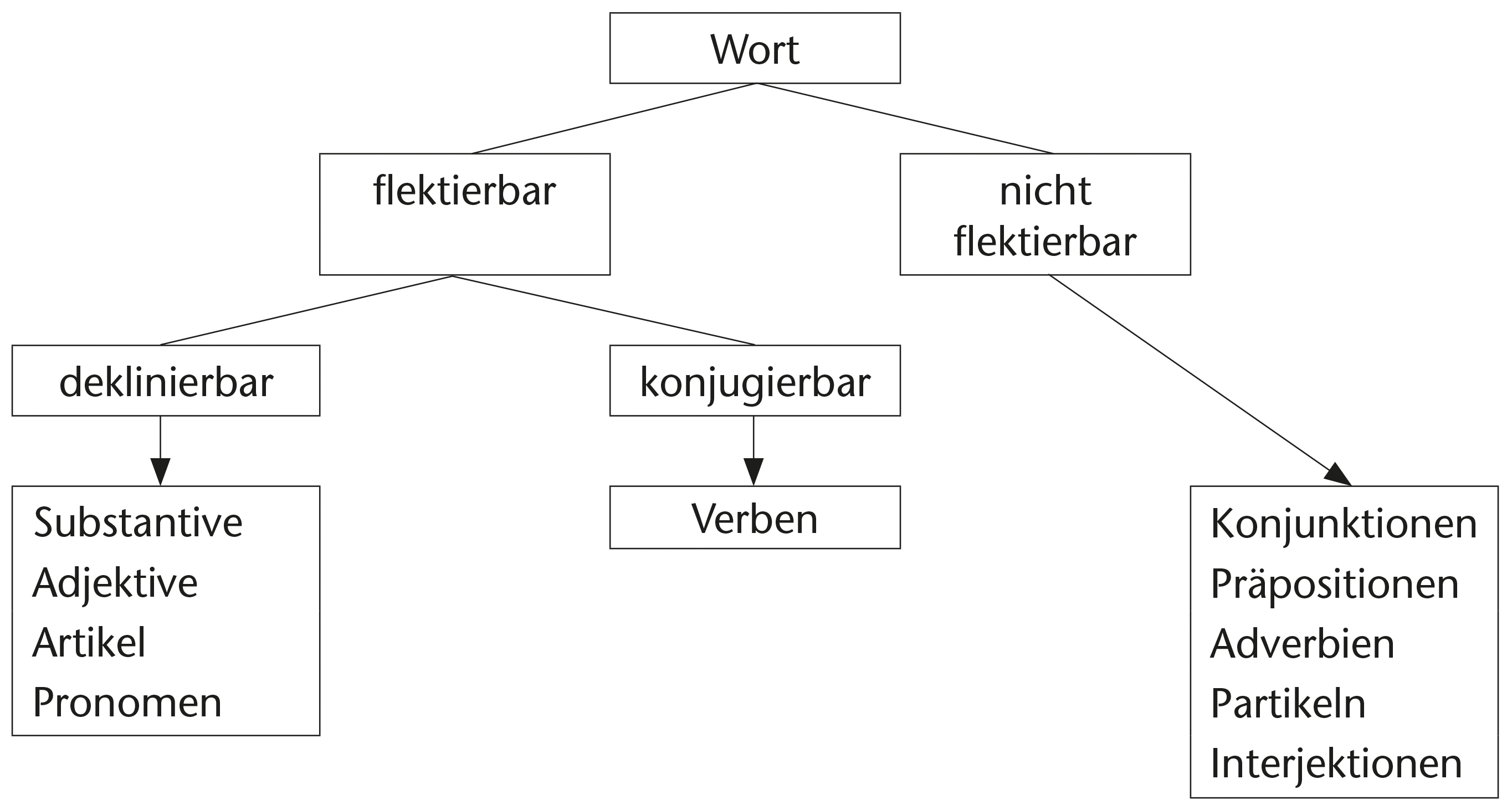 Wortarten: deklinierbare, konjugierbare, unflektierbare Wortarten
