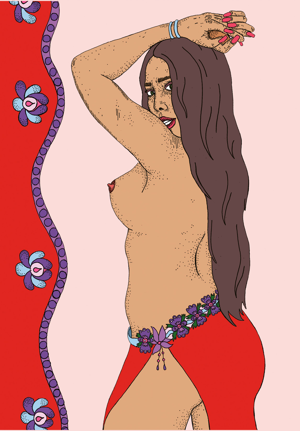 Wenn ich richtig Lust habe, mache ich gerne Bauchtanz für ihn. Dann habe ich einen langen Rock und einen BH an. Manchmal lasse ich den BH auch weg.