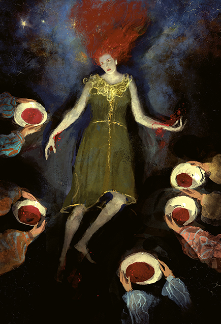 Die Stadtbevölkerung kam zu dem Haus, dann die Menschen aus den benachbarten Orten. Anastasias Vater flehte sie an, Vernunft anzunehmen und die Tür zu verriegeln, aber sie weigerte sich, sie abzuweisen. Ihr Blut wurde in kleinen Schalen abgenommen – aus ihren Handgelenken, ihren Armen, ihren Fußgelenken – und hinaus zu den Menschen gebracht, die es tranken und gesund wurden. Als Anastasia erfuhr, dass es welche gab, die zu schwach waren, um zu ihr zu kommen, bat sie, auf einen Wagen gelegt und hinaus aufs Land gefahren zu werden, von Dorf zu Dorf, zu Gehöften und Städten. Schwächer und immer schwächer wurde sie, bis schließlich, in Arkesk, die letzten Tropfen ihres Bluts aus ihrem Körper in einen wartenden Becher tropften und ihr Körper eine bloße Hülle wurde, die mit dem Wind davonflog.