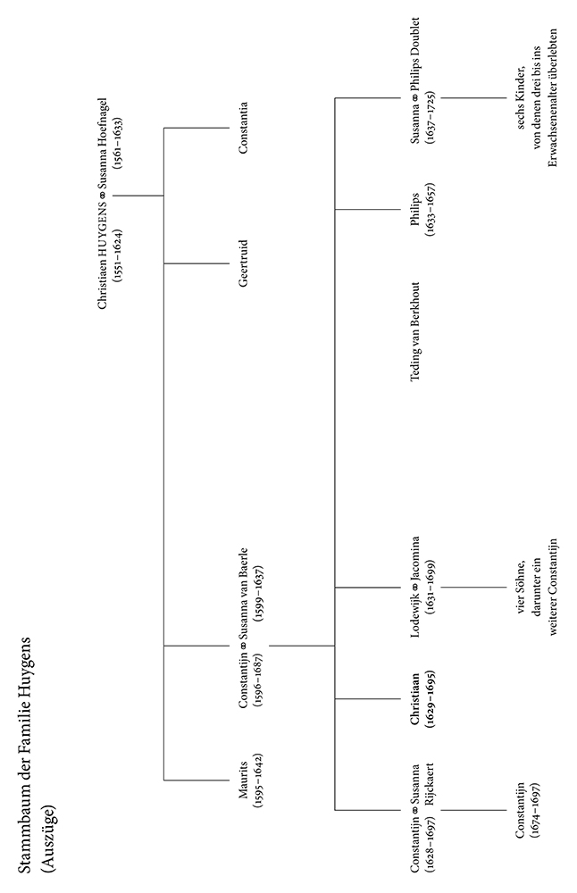 Wesentlich für ein Verständnis von Christiaan Huygens’ Werdegang ist auch das familiäre Milieu der Familie in Den Haag. Nicht nur waren in diesem Hause Descartes und Rembrandt zu Gast; außerdem lag es in Reichweite zum Macht- und Einflusszentrum der Republik der Niederlande. Das alles vereinfachte die Kontakte, und Christiaans Brillanz tat den Rest dazu, dass er seinen Platz im Firmament der europäischen Gelehrten fand — zwischen Blaise Pascal, Pierre de Fermat, Marin Mersenne, Jacob Bernoulli, Robert Hooke, Robert Boyle, John Wallis, Giovanni Cassini, Thomas Hobbes, John Locke, Gottfried Leibniz und Isaac Newton.