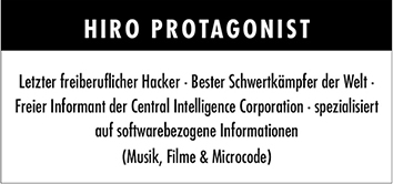 Hiro Protagonist war mal Programmierer, aber seit auch hier die Konzerne alles gleichgeschaltet haben, zieht er jeden Bullshit-Job vor: Pizza-Auslieferer für die Mafia. Oder Information Broker für die ehemalige CIA.
