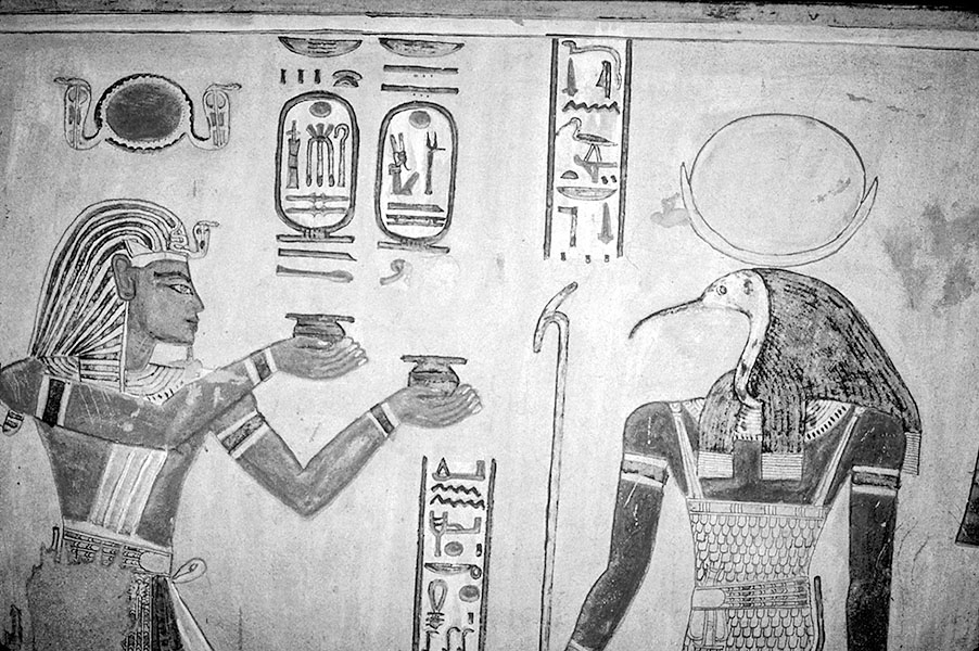 Nach der Sonne ist der Fluss der größte Lebensspender. Sein Geschenk ist die Fruchtbarkeit des Bodens; sein Preis, dass er bei Überschwemmungen die Hütten der Menschen wieder in Schlamm verwandelt. Am Ende des Tages, wenn Ra die Sonne wieder in die Unterwelt fallen lässt, wird er Chnum, der widderköpfige Gott des Flusses. Doch die Menschen verdanken Chnum mehr als nur die schäumenden Fluten. Er nimmt den Lehm auf, den der Fluss mit sich führt, und formt daraus auf seiner Töpferscheibe die Körper von Kindern. Diese legt er den Frauen in den Schoß und vertraut sie der Obhut von Flusspferd und Frosch an. Aus denselben Fluten werden noch andere Götter geboren, die den Menschen Heil und Unheil bringen. Der weiseste ist Thoth, Schöpfer der Schrift und Schreiber der Götter, Gesetzgeber, Gott der Weisheit, der Magie und des Verstandes, Herr des Himmels. Er trägt den Kopf eines Ibisses, des edelsten Vogels des Flusses. Zu seinen Ehren werden Millionen dieser schönen Tiere ausgebrütet, geopfert und einbalsamiert – die Vorbereitung auf ihren Flug ins Jenseits. Im Fluss wohnt auch Sobek, ein schlechtgelaunter Krokodilgott, der aus Gründen, die nur er selbst kennt, die Schwachen manchmal schützt und manchmal zwischen seinen Kiefern zermalmt. Auch Fische werden gelegentlich vom Göttlichen berührt. Der Buntbarsch schützt seine Jungen, indem er sie bei Gefahr verschluckt, um sie hinterher wieder auszuspucken. Hathor, die Göttin der Liebe, hat den Fisch daher zum Symbol der Wiedergeburt gemacht. Auch der Fischgott Oxyrhynchus verschlingt gerne das eine oder andere, spuckt aber das Verschlungene nicht wieder aus. In seinen Magen gelangte der abgetrennte Penis des Gottes Osiris – gezeugt von den Löwenzwillingen Tefnut und Schu –, der die Fluten hinabtrieb, nachdem Osiris von seinem eifersüchtigen Bruder Seth getötet und zerstückelt worden war. Osiris’ Frau und Schwester Isis fand all die zerstreuten Teile, bis auf einen, und setzte sie wieder zusammen. So kommt es, dass der große Gott auf ewig verdammt ist, in der Unterwelt ohne Penis zu herrschen.
