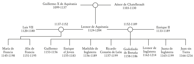 LEONOR DE AQUITANIA, nacida en 1124 y muerta en 1204, reina de Francia y reina de Inglaterra, ¿era una mujer excepcional? Ciertamente, una reina que ha tenido dos maridos reyes se sale de lo ordinario. Se casó primero con Luis VII, rey de Francia, y luego con Enrique II de Inglaterra. Tuvo una decena de hijos, de los que ocho sobrevivieron a la adolescencia, entre los cuales algunos personajes en la confluencia entre la realidad y el mito que hicieron las delicias de los autores de romances: Ricardo Corazón de León y Juan sin Tierra, por citar solo a los más famosos. Era también una viajera extraordinaria. Se suele considerar la Edad Media como un periodo sedentario, en que apenas se sale del propio pueblo en toda la vida, cosa que no es cierta para la nobleza. Leonor fue hasta Jerusalén, Antioquía, Constantinopla, Mesina, a Sicilia, a Castilla y a Navarra; recorrió en litera o a caballo Occidente y el próximo Oriente. Algo poco común, esta mujer nunca se dejó dominar por los hombres; se rebeló contra su marido en 1173, cosa que le costó quince años de cautiverio. Otro aspecto excepcional para su tiempo: su longevidad, pues Leonor recorrió el siglo XII durante cerca de ochenta años. Si el siglo XIII es el de san Luis, el XII es en Francia el de Leonor de Aquitania, que ha marcado el campo de las artes y de las letras que ella patrocinó.