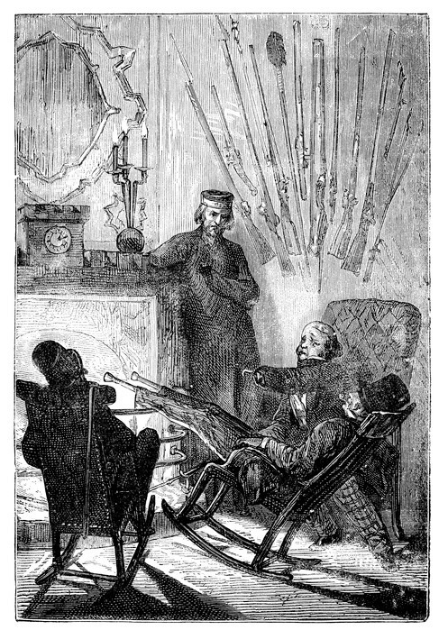 Vor dem Podium waren Bänke im Zickzack aufgestellt, deren Anordnung einer Verteidigungslinie mit Schanzanlagen glich und auf denen sich die Mitglieder des Kanonenclubs dichtgedrängt nebeneinander niederließen, so dass man sagen konnte, dass an diesem Abend »die Wälle gut besetzt waren«. Man kannte den Präsidenten gut genug, um zu wissen, dass er die Versammlung nicht ohne triftigen Grund einberufen hatte.