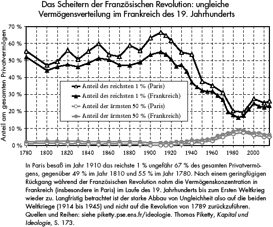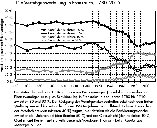 Wie lassen sich diese komplexen und widersprüchlichen Entwicklungen begreifen? Wie kann man insbesondere in Europa den Rückgang der Ungleichheit im letzten Jahrhundert erklären? Neben der Zerstörung von Privatvermögen in den beiden Weltkriegen ist besonders die positive Rolle der Umwälzungen in den Rechts-, Sozial- und Steuersystemen vieler europäischer Länder im 20. Jahrhundert hervorzuheben.