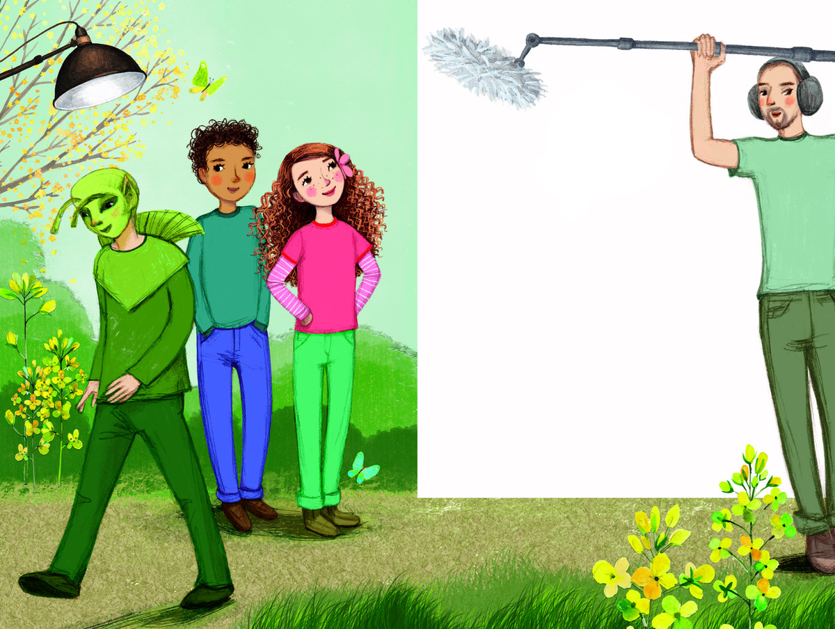 »Oh, das ist Fiona, Mamas Freundin«, erklärte Lilli und lief los. Jesahja, der einem grasgrünen Wesen auf langen Stelzenbeinen hinterherschaute, folgte ihr. Doch dabei übersah er einen Mann, der eine riesige Kamera vor sich hertrug. Zum Glück konnte der gerade noch ausweichen.