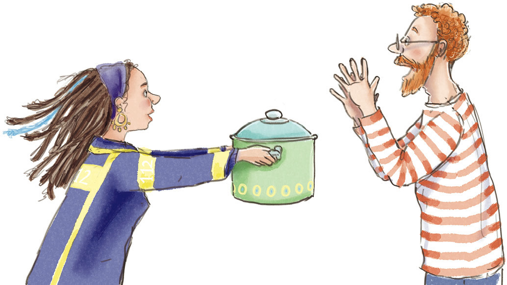 Aber Feline schüttelte den Kopf. »Geht leider nicht. Ich muss noch die Drehleiter reparieren und ein paar Katzenkinder retten.« Sie drückte ihm den Topf in die Hand und verschwand genauso feuerwehrschnell, wie sie gekommen war.
