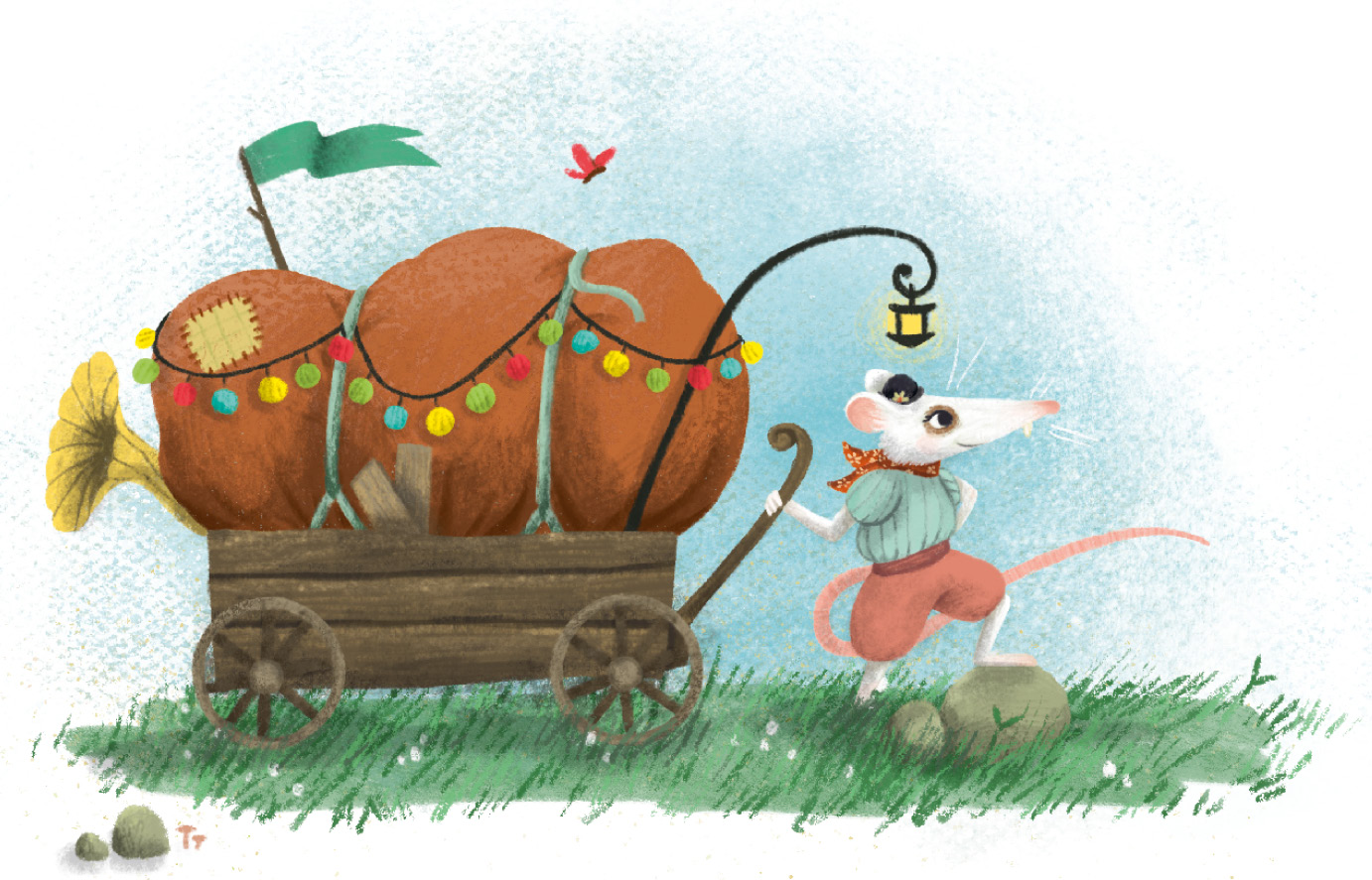 Borke schnaufte. Zara erzählte ihm alles, was sie über Minna Melone herausgefunden hatte. Zum Beispiel, dass sie einen Hut trug, den man Melone nannte, und dass ihre Kleidung elegant aussah und fremd duftete. Sie berichtete ihm außerdem, dass die Ratte am Waldrand eine kleine Theaterbühne errichtet hatte, auf der sie fortan jeden Abend eine Vorführung geben wollte. Der rote Fetzen Stoff war beim Bau übrig geblieben und Minna hatte ihn ihr geschenkt.
