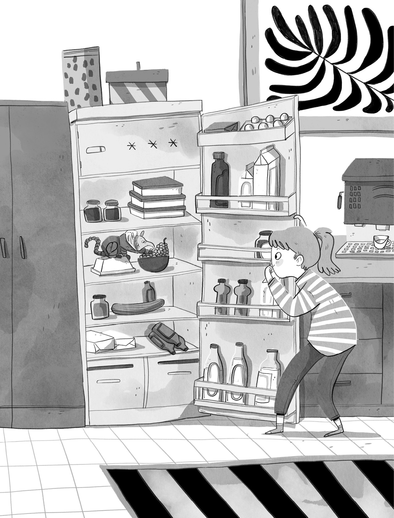Auf Zehenspitzen schlich sie an der Tür zum Schlafzimmer des schnarchenden Onkel Donald vorbei in die schummerige Küche, wo sie sofort den Grund für den ganzen Lärm entdeckte. Es war der Kühlschrank.