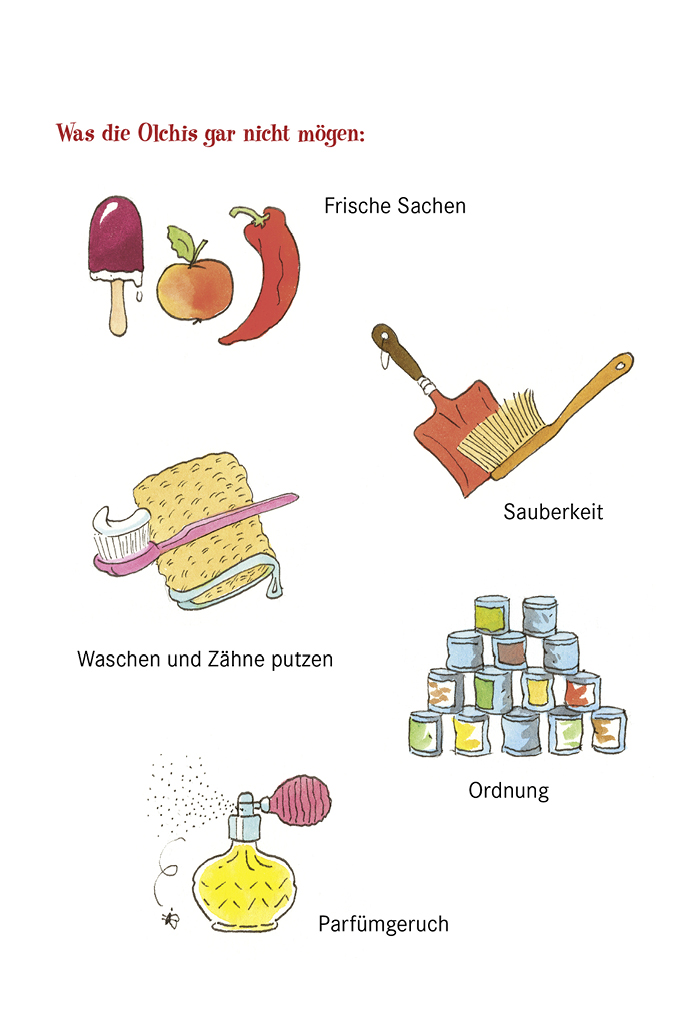 Vielleicht war scharfer Bröselstampf mit eingelegten Socken eine gute Idee. Damit Olchi-Papa nicht wieder meckerte, musste sie noch ein paar feine Fischgräten dazugeben. Gräten waren Olchi-Papa immer sehr wichtig.
