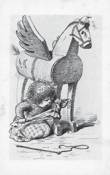 die schöne Karte zeigt, wie der Pegasus eines nicht weiter genannten H. K. zu neuem Einsatz vorbereitet wird.