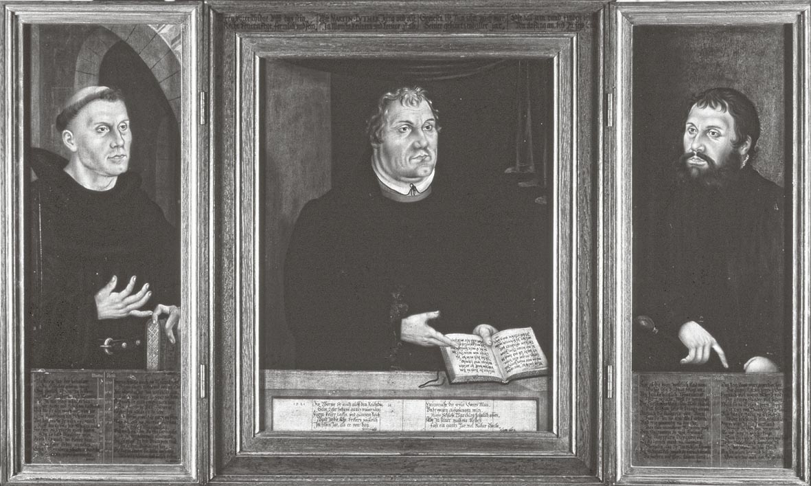 So wie es das von Anfang an getan hat. Keine andere protestantische Religionsgemeinschaft hätte eine solche erstaunliche Anzahl von Ausstellungen ausrichten können, weil keine andere ein so umfangreiches materielles und visuelles Erbe pflegte. Die meisten anderen protestantischen Gemeinschaften teilten bilderstürmerische Instinkte, misstrauten üppigen Altarbildern, die möglicherweise die Sinne auf Abwege führen konnten, und bevorzugten weiß getünchte Wände oder einfache Sprüche aus der Heiligen Schrift. Nicht so Luther: Er blieb von Anfang an näher am Katholizismus, den er verlassen hatte, und obwohl die Lutheraner ihre Kirchen umgestalteten, um didaktische Kunst einzubeziehen – mit Gemälden, die zeigen, wie Christus die Kinder segnet, wodurch sie die Bedeutung der Kindertaufe unterstrichen, oder mit Bildern, die Gesetz und Evangelium thematisieren –, schmückten sie die Orte ihres Gottesdienstes mit ansprechenden und der Mode der Zeit entsprechenden manieristischen Gestaltungen. Sie statteten ihre Kirchen auch mit Bildern des Reformators selbst aus. Der Künstler Lucas Cranach(8) zählte zu Luthers ältesten Freunden und frühesten Unterstützern, und wie das Lutherjahr gezeigt hat, tat er mehr als jeder andere Künstler dafür, die bemerkenswerten Kirchen von Sachsen und Thüringen zu gestalten, Luthers Gesicht bekannt zu machen und den Stil frühmoderner lutherischer Drucke zu prägen.[13] Das Luthertum war ebenso sehr eine visuelle und materielle Kultur wie eine musikalische. Und wenn wir glauben, dass wir Luther als Individuum »kennen« können, liegt das größtenteils daran, dass wir mit dem Luther aus Cranachs(9) Werkstatt so vertraut sind – dem Mann mit tiefsitzenden, weitblickenden Augen, der selbstbewusst robusten Haltung und der widerspenstigen Locke, die unter seinem Doktorhut respektlos hervorlugt. Selbst wenn dieses Buch Luther auch gelegentlich kritisieren kann oder auf weniger angenehme Seiten von Luthers Vermächtnis hinweisen wird, so hoffe ich doch, dass dies im Geist des Luthertums aufgenommen werden wird, den ich so bewundere: sein ausgeprägter Anti-Autoritarismus, sein politisches Engagement und sein Insistieren auf Argumentation, Diskussion und kritische Bewertung der eigenen Geschichte.