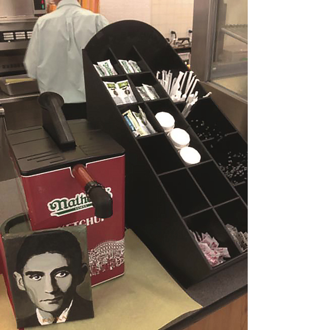 Spezialist darin sein, Seltsames vorzubringen. Oder darin, infrage zu stellen; Kafkas Gesicht trägt diese Impulse an neue Orte. Trägt es ein Warum? Weshalb? Ein Gesicht, das eine Frage transportiert. Eine Frage, die gewissermaßen eine Anklage ist. Eine Anklage, die sich nicht zwangsläufig auf gehobene oder historisch wichtige Themen bezieht. Warum diese Farbe? Warum dieser Stuhl und nicht ein anderer? Warum diese Landschaft? Aber auch: Warum so leben?