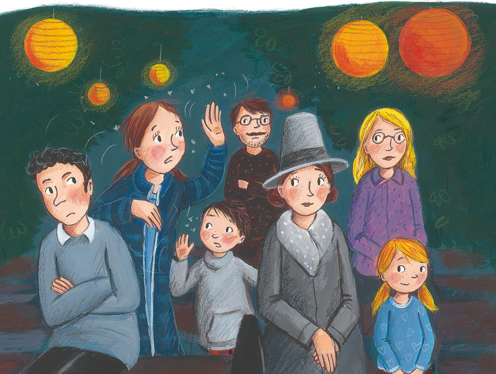 »Siehst du, jetzt gibt es doch noch eine Gutenachtgeschichte«, flüstert Sophia in Pias Ohr. Papa dreht den Ball vor der Lampe ganz langsam um sich selbst.
